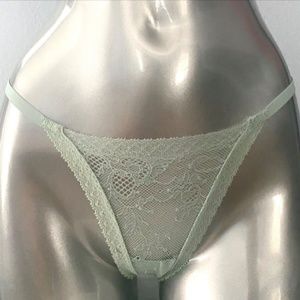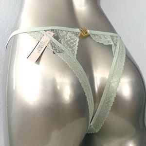 Victorias Secret Nwt Very Sexy Hazy Mint Lace Gold V Open Back String Panty