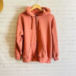 Victoria’s Secret On Point Cotton Fleece. In excellent condition. Size small but it’s a little oversize so it will fit a medium size too. Color is like peach/coral. Full zip, hooded. Super soft inside. Pet and smoke free home B10