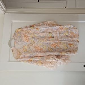 Floral open front robe with lace edged sleeves by Victoria's Secret. 100% cotton.