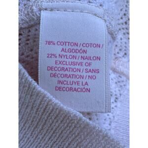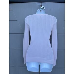 Soft and feminine Victoria’s Secret knit sweater top in a delicate blush pink shade. This lightweight henley features a semi-sheer open knit design, flirty button front, and subtle lace trim detail peeking from the neckline for a romantic touch. Perfect for layering, lounge, or styling with jeans and skirts for an effortless Y2K aesthetic.