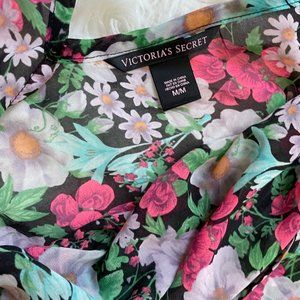 Victoria's Secret Open-back tunic/caftan MEDIUM dark floral print peep arms