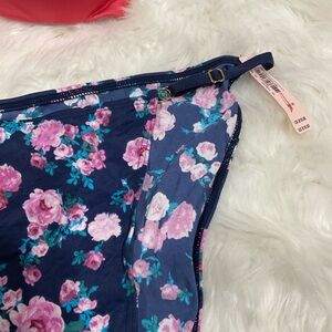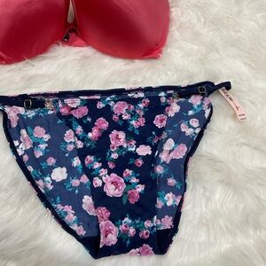 Navy blue flowery bikini bottom,