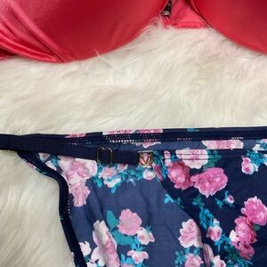 Victoria's Secret Orangy Bra with Navy/Pink Floral Bikini Bottom