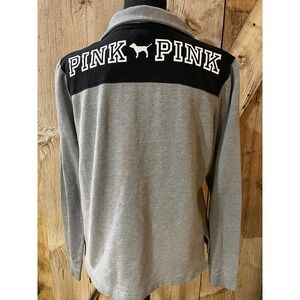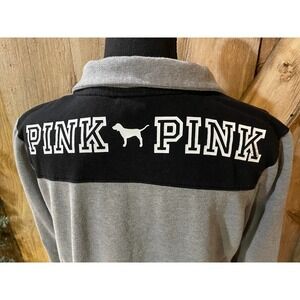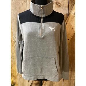 Victoria's Secret PINK 1/2 Zip Collared Sweatshirt Women's M Medium Gray Black White Front Pouch Pocket