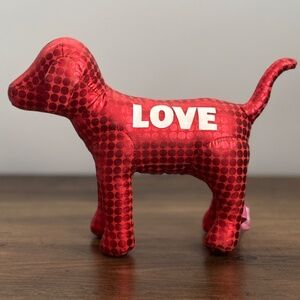 Victoria's Secret PINK 2 Dogs Dog Red LOVE Blue HEART Plush Stuffed Toy METALLIC