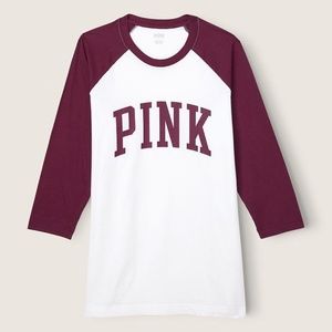 Victoria's Secret PINK Cotton 3/4 Sleeve Campus Baseball T-Shirt Rich Maroon Colorblock Medium NEW