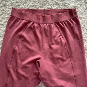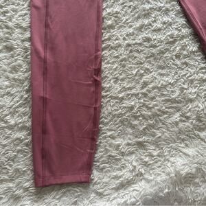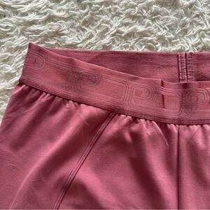 Features: soft high waist rose colored leggings with a logo waistband