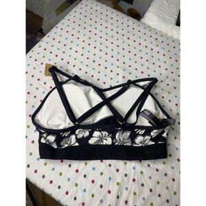 Brand new with tags! From the PINK Active line, this Ultimate Low-Impact Sports Bra comes in a bold black-and-white hibiscus floral print. Features a strappy crisscross back, elasticized underband, and supportive yet comfortable fit. Designed for low-impact workouts like yoga, barre, and pilates, or perfect for layering under casual looks. Made with partially recycled materials.