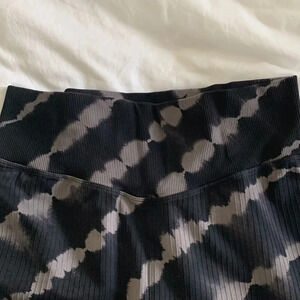 Black & gray tie dye. Excellent condition. Wide waist band. Back hidden pocket. 7/8 length. Ribbed.