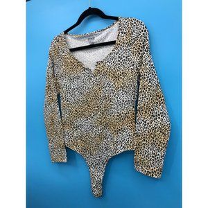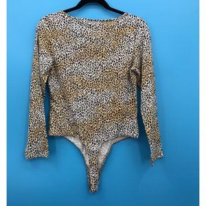 Victoria's Secret PINK Animal Print Cheetah Bodysuit Long Sleeve Large NEW