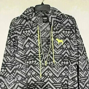 Victorias Secret PINK Anorak Jacket Aztec Hoodie Drawstring Dog Half Zip