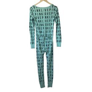 Victoria's Secret PINK Aqua/Black Waffle Knit Love Pink Onesie Sz XS