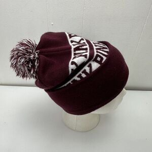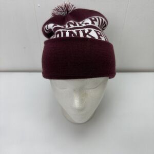 Victorias Secret PINK Beanie Hat Winter Cap Maroon White Knit