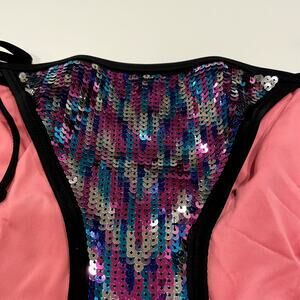 Victoria's Secret PINK Bikini Bottom Womens Medium Black Multicolor Sequin Tie