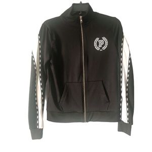 Victoria’s Secret PINK Black Full Zip Active Top. Great top for athleisure, gym, walk and or running. Full zip closure on front. Long sleeves accented with white panel and PINK trimming.Ribbed collar, cuffs and hem