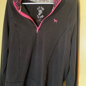 Victoria’s Secret PINK Black Quarter Zip Pullover Sweatshirt Size L Logo Dog