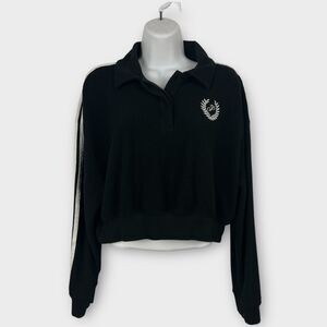 Victoria's Secret PINK Black Reverse Fleece Cropped Polo Sweatshirt Women's Med.