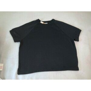 Victoria's Secret PINK Black Short Sleeve Cropped Sweatshirt size LARGE, NEW