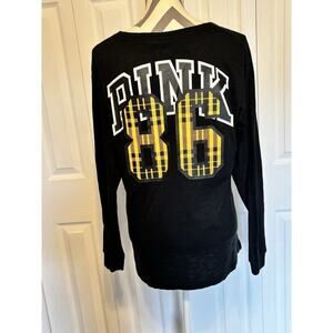 Victoria’s Secret PINK Bling 86 Varsity Crew Long Sleeve Black Shirt Size Medium