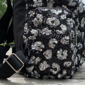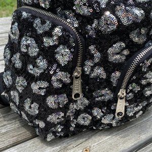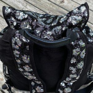 Victoria's Secret PINK Bling Black Leopard Backpack with Sequins *RARE*
