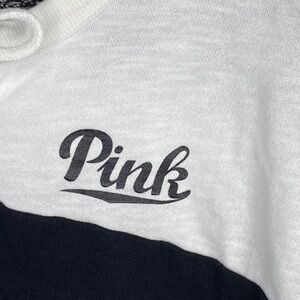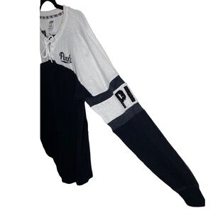 Victorias Secret PINK Bling Sequin Pure Black Triumph White Lace Up Varsity Crew Pullover Top Tunic Size XS