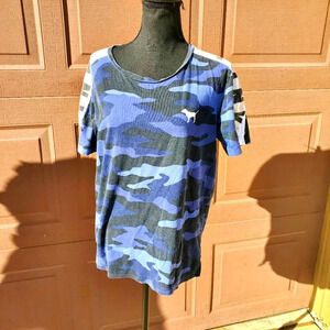 Victoria’s Secret PINK Blue Camo Tee Size Small