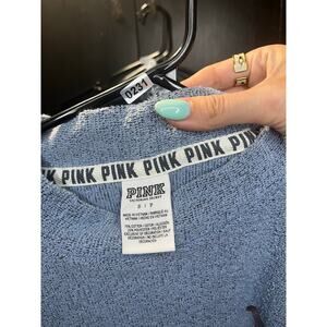 Victoria’s Secret PINK Blue Mock Neck Terry Sweatshirt Small Logo Dog