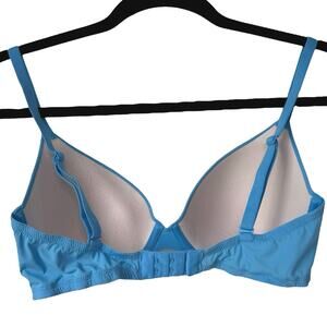 Victoria’s Secret PINK Blue Push Up Bra 32D Smooth Underwire Plunge Coquette