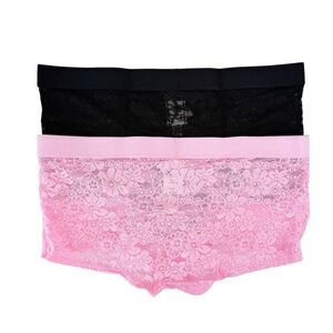 Victoria's Secret PINK Boyshort Panties Lace Womens Medium M Wink Logo LOT OF 2