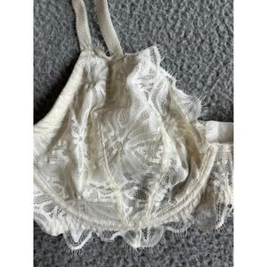 Victoria's Secret PINK Bra 36D Sheer Lace Embroidered Underwire Full Coverage White