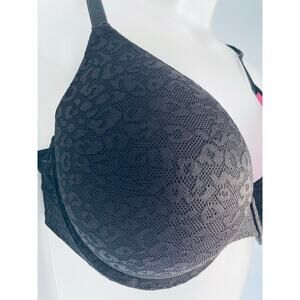 Victoria's Secret PINK Bra Push Up 34DD Black Animal Pattern NWOT