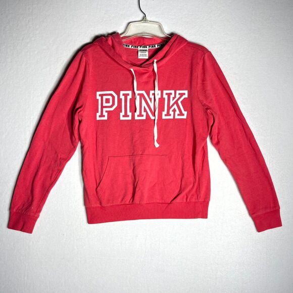 Victoria's Secret PINK hoodie, bright pink hoodie, women's casual wear, white lettering, size S, cozy hood, trendy fashion, ladies apparel.