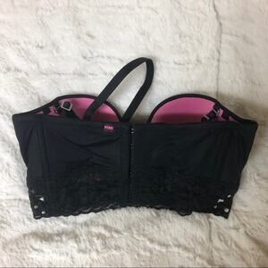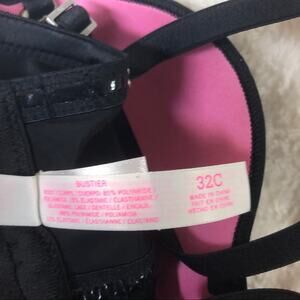 Victoria’s Secret PINK Bustier Bra Womens 32C Black Sparkle Lace Lingerie