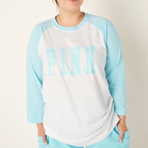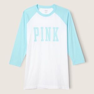 Victoria's Secret PINK Campus Baseball Tee Blue Breeze ColorBlock Large NEW