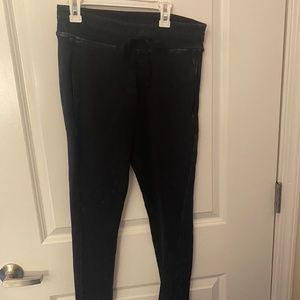 These yoga pants from Victoria's Secret PINK are higher quality than the classic cotton leggings. These feature a grey/black light acid/distressed wash, thick waistband and ankle bands, drawstring for adjustable size, and zippered pockets. Although they are leggings, they are structured more like a cross between a jogger pant and a legging. Perfect for working out, lounging, or a night out. Gently used and worn a few times.