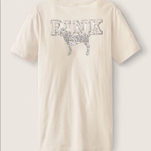 Victoria's Secret PINK Campus Short Sleeve Tee Vanilla Bean Shine NEW