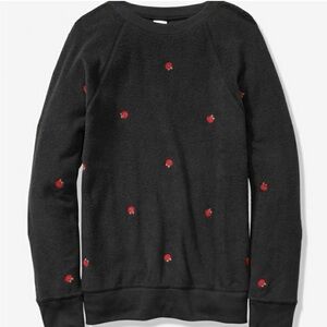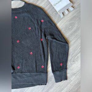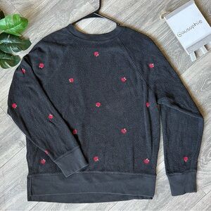 Victoria's Secret PINK Crew EmbroideredRoses dark grey Fleece Sweatshirt XS