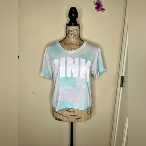 Victoria’s Secret PINK Cropped Light Blue, Lavender & White Tie Dye Shirt Sz M