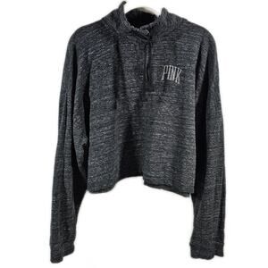 Victoria's Secret PINK Cropped Varsity 1/4 Snap Sweatshirt Marl Gray L
