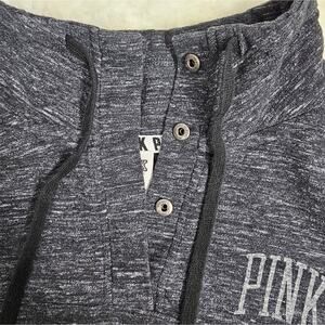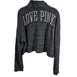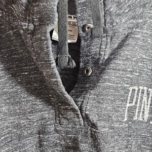 This is a fun, flirty little sweatshirt in EUC from Victoria's Secret PINK collection in marl gray. It is cropped, with a boxy, oversized fit. It has a cowl neck with quarter snaps and a drawstring. The front has the word "PINK" on the left chest, and "LOVE PINK" is in large lettering across the back. The fabric is soft and lucious. Size is LARGE.