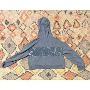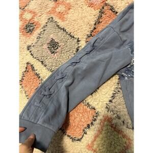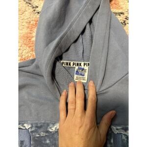 Victorias Secret PINK Cropped velvet Stripe Lace Up Sleeve Hoodie Blue Large