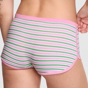 Victoria's Secret PINK Cotton Dorm Boyshort Panty White Pink Green Stripe Print Large NEW