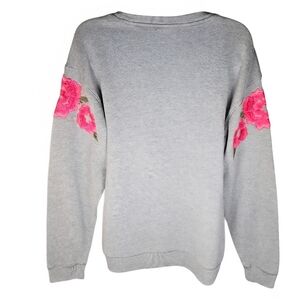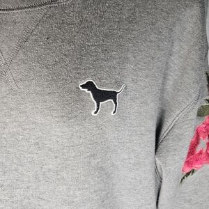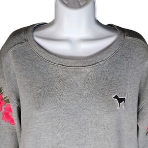 Victoria's Secret PINK Embroidered Flower Sleeve Pullover Sweatshirt Grey Medium