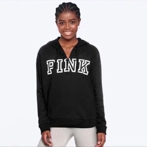 Victoria’s Secret PINK Everyday Lounge Quarter Zip Black Hoodie Pullover, Medium