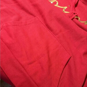This is a Victoria’s Secret size 2 XL PINK fleece campus hoodie that is super comfy. The tag has been cut out, but I’m including a picture of the tag of the exact same one that I’m selling in black. They were bought at the same time and are the exact same size. This is great to throw over another shirt for an added layer of warmth. Had the hoodie pockets on the front. This is red with gold writing. Smoke free home, no tears, rips, stains