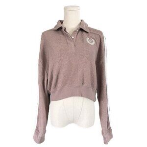 Victorias Secret Fleece Varsity Cropped Sweatshirt Size M Brown Sherpa Henley