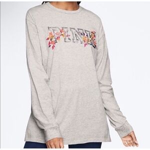 Victoria's Secret PINK Grey Bling Campus Long Sleeve Tee Tshirt