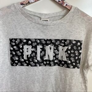 Victoria’s Secret PINK Gray logo top! Floral print bar with PINK cut out across the chest, so cute!