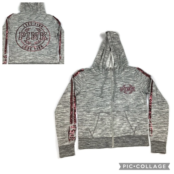 Victoria’s Secret PINK Gray Full Zip Bling Hoodie