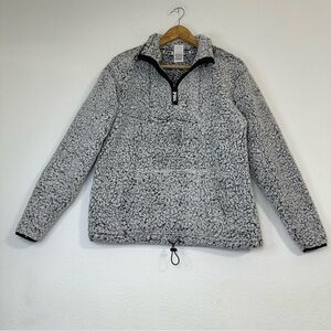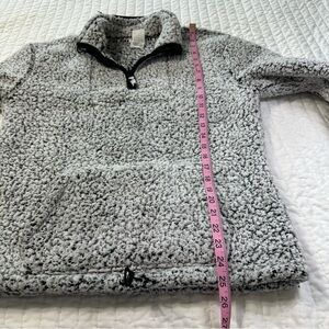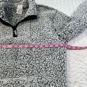 Victoria's Secret PINK Gray and Black Quater Zip Pullover Sherpa Sweater